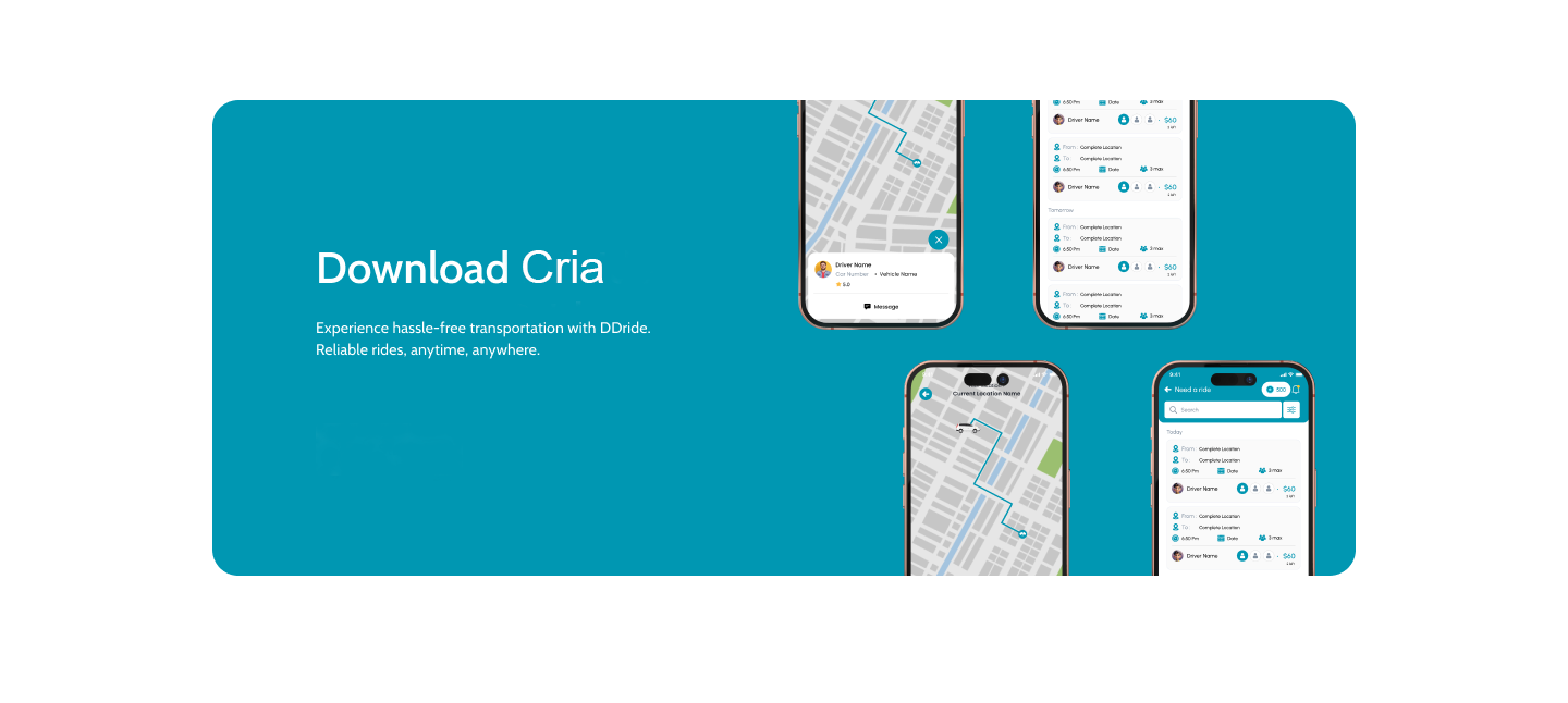 Cria connects drivers and riders sharing gas and mileage costs with no commissions. It’s simple, affordable, and powered by smart features like no other!